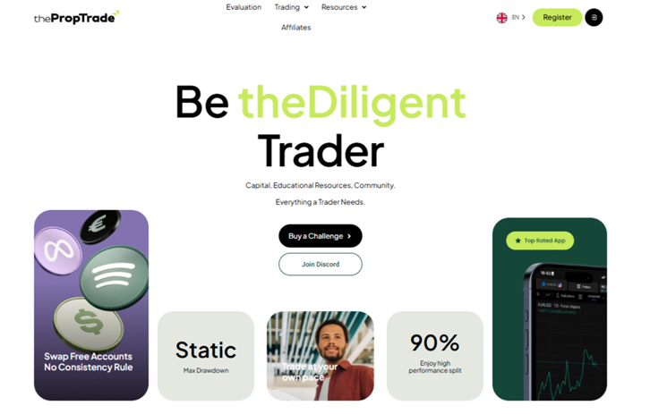 thePropTrade is a prop trading firm that offers both 1-phase and 2-phase evaluation models, catering to various trading styles, including scalping and swing trading. Their evaluations are designed with realistic drawdowns and profit targets, ensuring a fair assessment of a trader’s skills. Upon successful completion, traders are provided with funded accounts, allowing them to trade with the firm’s capital and share in the profits.